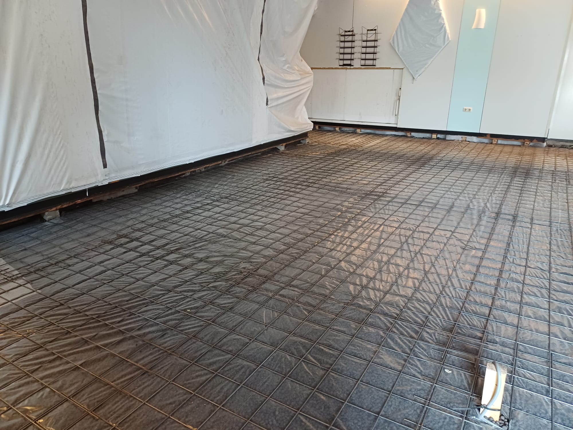 folie met wapening geplaats en indien gewenst vloerverwarming leidingen. Dit zorgt voor een stabiele sterke dekvloer.